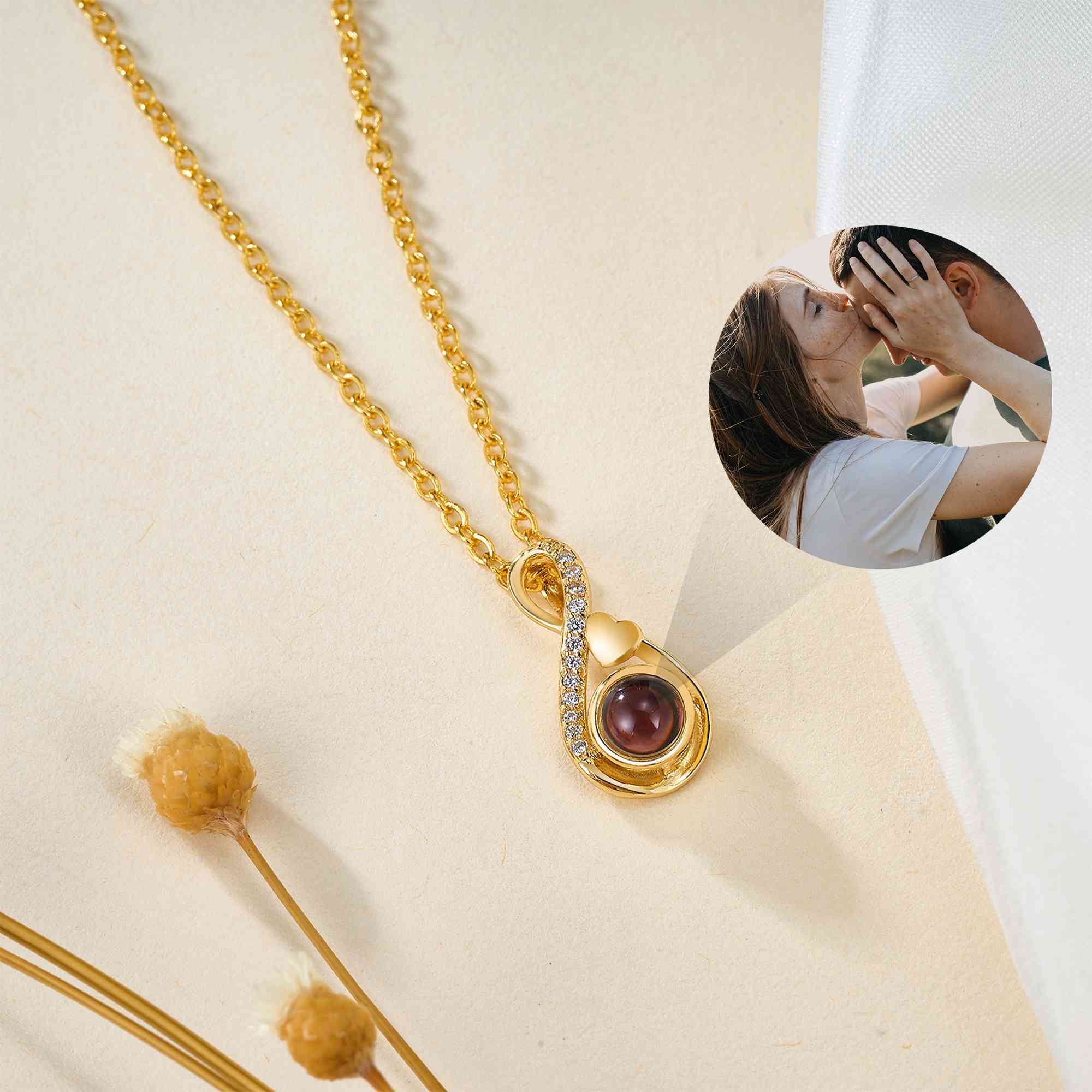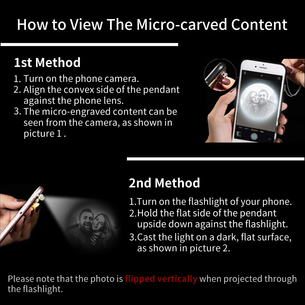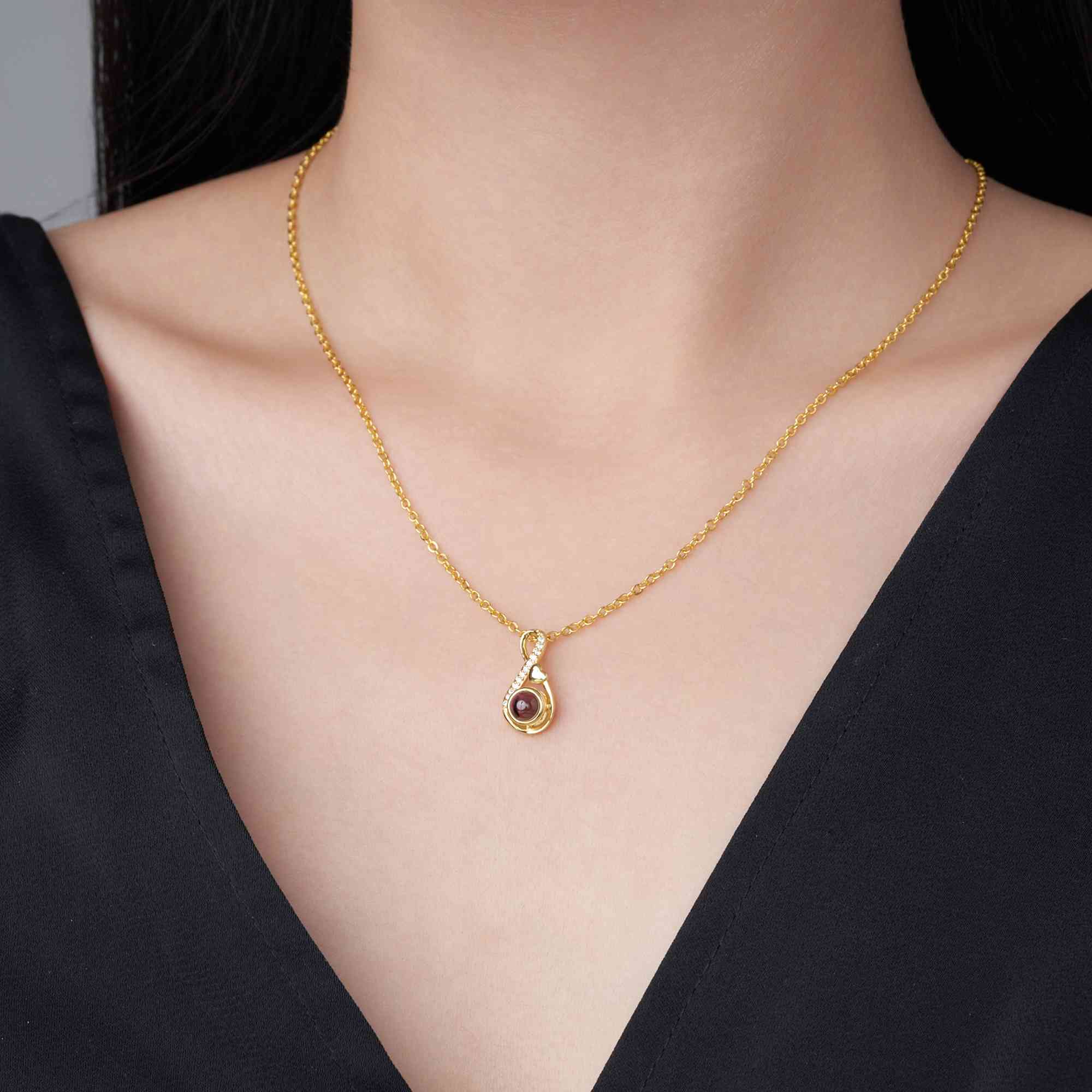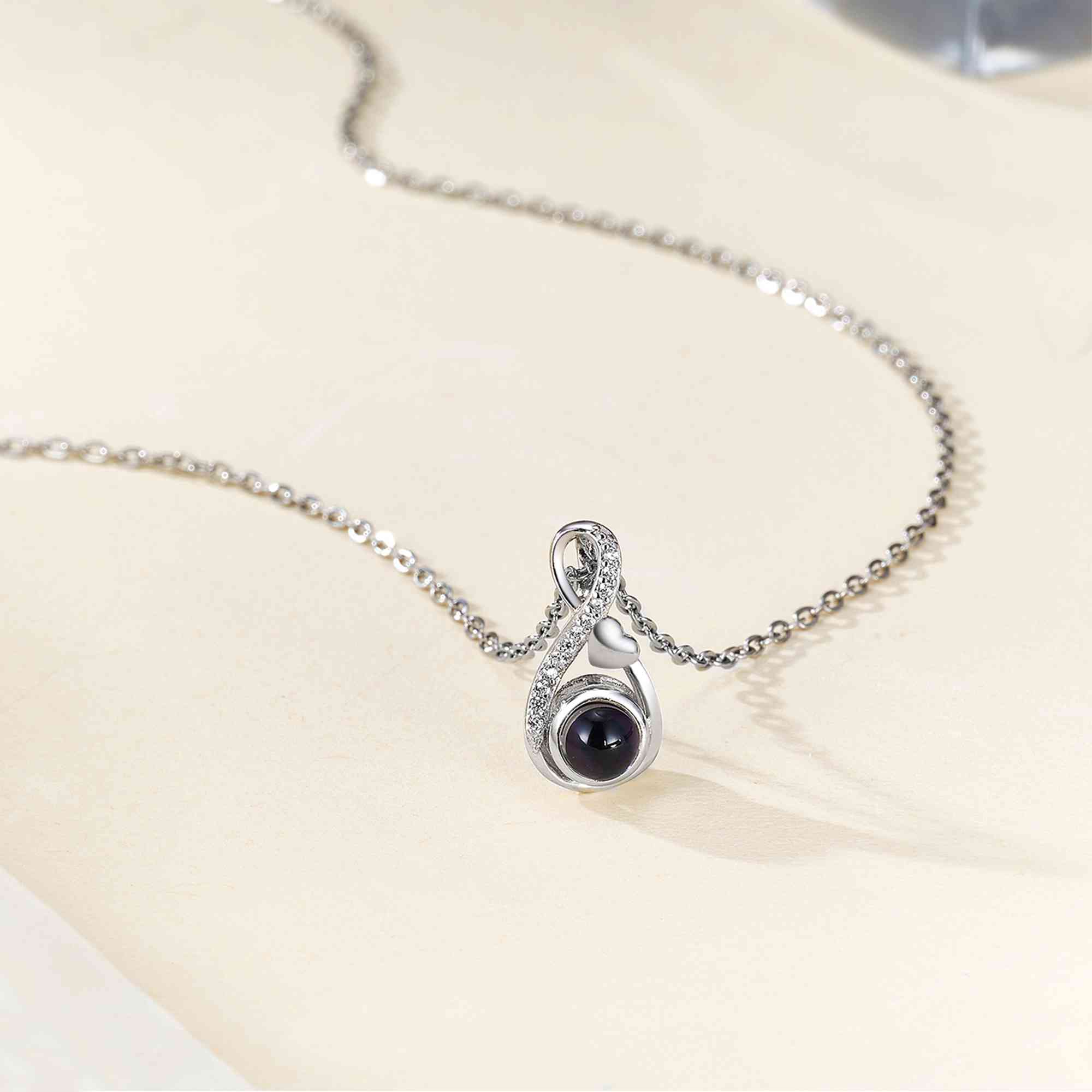 Custom Photo Projection - Personalize the necklace with your chosen photo inside the projection stone. When illuminated by a light or camera, it reveals your image along with "I Love You (Forever)" or "Happy Birthday" in 100 languages, turning the necklace into a heartfelt keepsake.